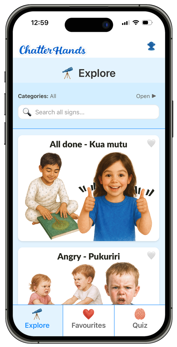 Learn NZSL through our free WebApp designed for kids, parents, caregivers and classrooms.